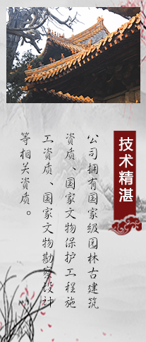 堅(jiān)持質(zhì)量為先,信譽(yù)為重,管理為本,服務(wù)為誠的理念。本著對(duì)社會(huì)、對(duì)建設(shè)單位負(fù)責(zé)的原則,將工程質(zhì)量、安全生產(chǎn)放在工作的重要位置。我們堅(jiān)持發(fā)展古建藝術(shù),弘揚(yáng)民族文化,作為企業(yè)的經(jīng)營(yíng)管理理念。曲阜古建筑義德古建始終秉承“科學(xué)管理,創(chuàng)精品工程,打造古建筑行業(yè)標(biāo)準(zhǔn)”的方針,追求更高質(zhì)量,為文物保護(hù)、傳統(tǒng)建筑事業(yè)做出貢獻(xiàn)。